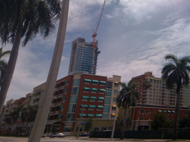 This is a picture of a new residential building going up in Miami Beach. It is in no way the only building going up. There are at least 10 projects similar in size and price. All of them are large monuments, empty on nearly every floor. The entire coast of South Florida is littered with projects like this. The circumstances are the same...empty. In this picture, the smaller attractive building in front is also nearly brand new with commercial bottom floor and residential on up. Nearly every unit empty. Will this change-NO. Only worse.